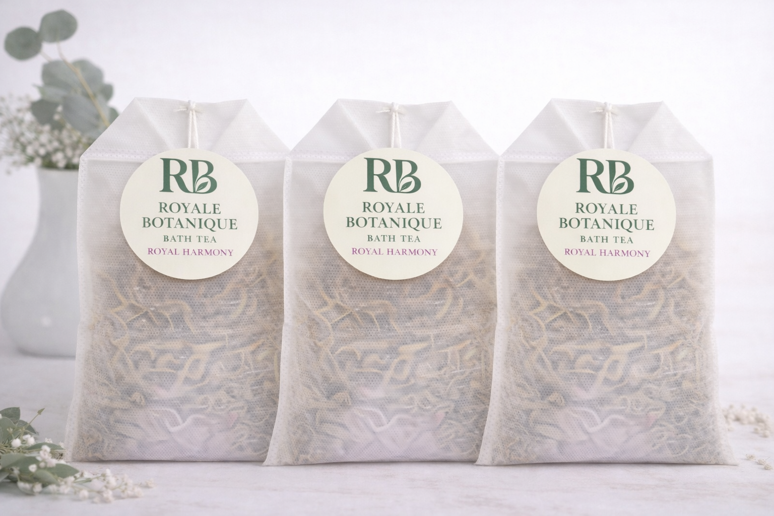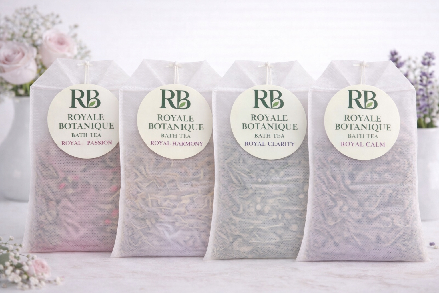 Objavte silu botanických rituálov v jednom exkluzívnom balení. Royale Ritual Mix Pack spája 4 jedinečné kúpeľové čaje , z ktorých každý je navrhnutý pre inú náladu, potrebu a moment oddychu. Ideálny ako darček – pre niekoho blízkeho alebo ako luxusný rituál pre seba ČO BALENIE OBSAHUJE: Royale Passion – zmyselný a hrejivý rituál Royale Calm – hlboké upokojenie a uvoľnenie Royale Clarity – mentálna sviežosť a čistota Royale Harmony – rovnováha tela a mysle
